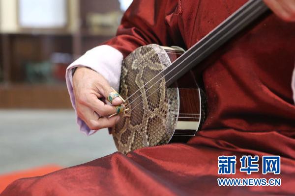 這是涼州賢孝的演奏樂器三弦。新華社記者 耿馨寧 攝