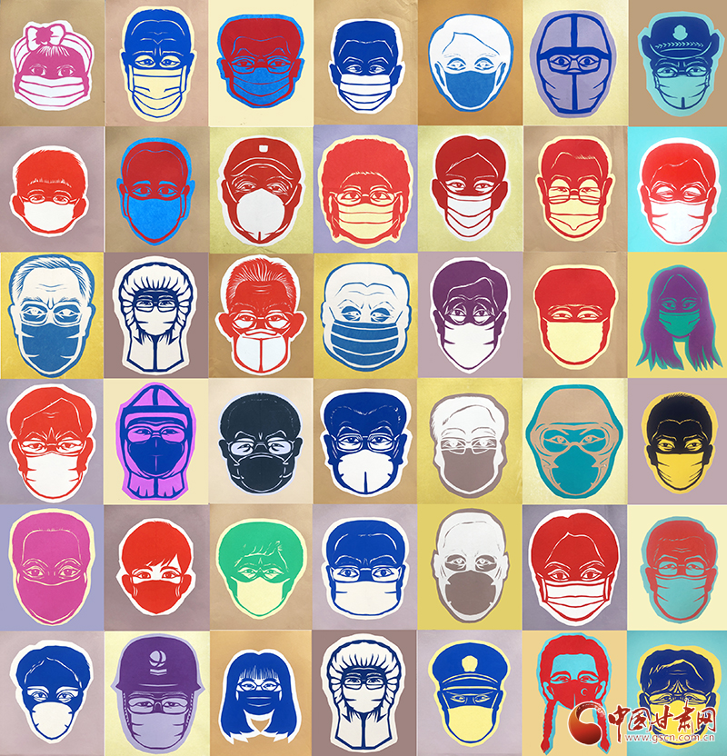 “在新冠肺炎疫情事件中,警察、醫(yī)護(hù)、新聞工作者,鄉(xiāng)鎮(zhèn)、街道社區(qū)工作人員以及街上擦肩而過(guò)的路人,他們的面孔被口罩遮蓋著,但口罩上的眼睛既靈動(dòng)又有故事,每個(gè)眼神都充滿了力量,我就萌發(fā)了用剪紙的形式,來(lái)呈現(xiàn)人物眼神和個(gè)性的想法。”何霞告訴記者,戰(zhàn)“疫”人物系列作品的名稱(chēng)初定為《平等》。