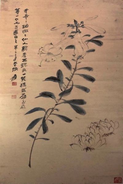 張大千贈楊尊一的《百合圖》
