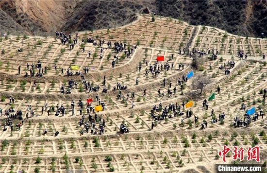 慶陽(yáng)市西峰城區(qū)職工春季義務(wù)植樹現(xiàn)場(chǎng)。 (資料圖) 徐亞?wèn)| 攝