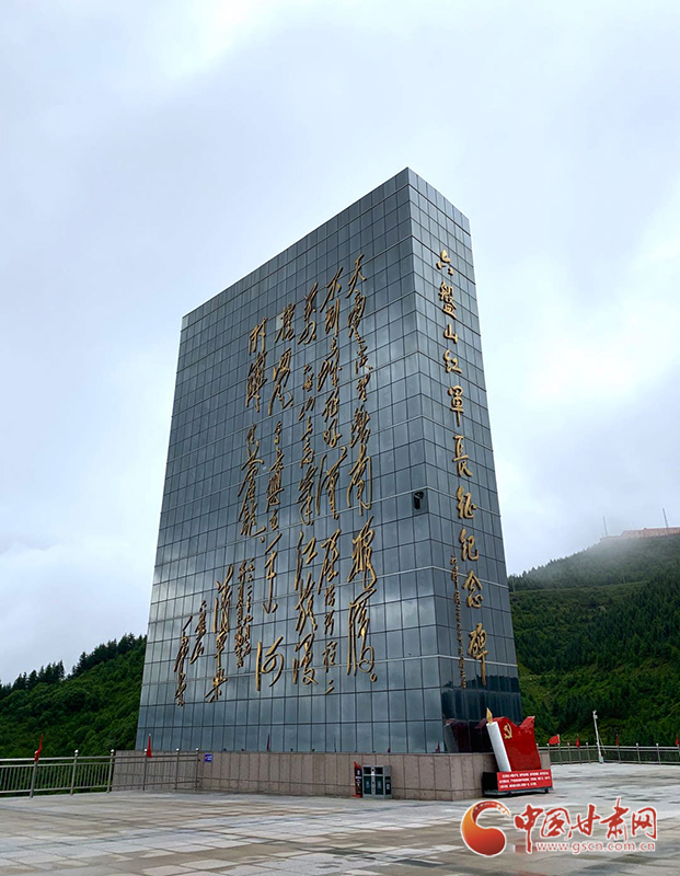 雨中的六盤山,滿目蔥蘢,煙云繚繞……六盤山主峰之上,一座高12米、長60米,由3面紅軍軍旗構(gòu)成,鐫刻著“長征精神永放光芒”八個大字的碑墻,隱約可見。繞過碑墻,拾級而上,就是六盤山紅軍長征紀(jì)念館。