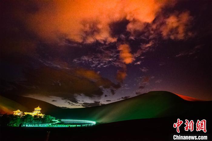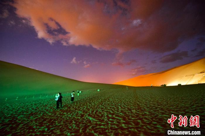 圖為游客觀(guān)賞大漠夜景?!⊥醣筱y 攝