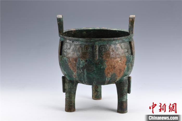 同時,酒務頭墓地大墓的形制、青銅禮器組合和器型紋飾風格等表現(xiàn)出其與商文化演進過程的同一性與復雜性。墓地不僅出土了成套系的樂器,如鼓、鈴、鐃等,還出土了種類豐富、造型各異的青銅鼎,其中不乏一些形體較大的重器,凸顯其禮器功能。其中,子匿圓鼎表面飾獸面紋、雷紋,足根部飾獸面、凸弦紋,鼎內(nèi)壁鑄有“子匿”銘文,應為族徽或人名。這種深腹、圜底、三足鼎的形制以及紋飾是商代晚期青銅鼎的典型樣式。