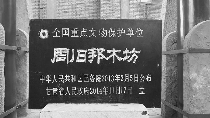 匾額題寫(xiě)好之后,“周舊邦”三個(gè)楷書(shū)大字懸掛于慶陽(yáng)縣城的木坊之上,留存至今。