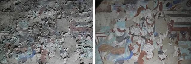 △壁畫修復(fù)前后對比圖