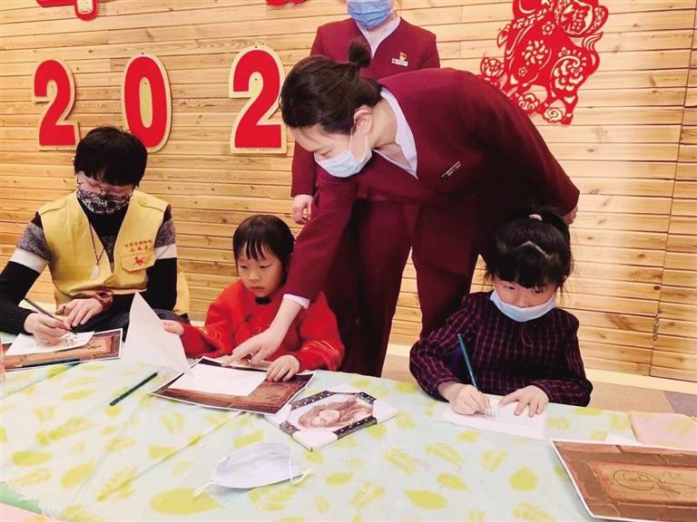 圖為小朋友在博物館體驗(yàn)?zāi)晁孜幕?/p>