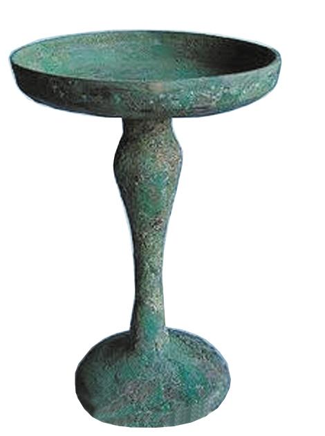 中國古代的照明工具,除掉最原始的火把,最早的是油燈而不是蠟燭,有關蠟燭的記載是漢代才有的。既然要用油燈,古人用什么器皿來盛放燈油和燈芯呢?人們找來找去,一種名叫“豆”的器皿脫穎而出。“豆”本為上古時代的一種盛食器,其上為圓盞盤,中間為或長或短的直柄,最下為喇叭或圓足形底座。簡單地說,“豆”的形狀就像高腳盤,一般用陶制,也有青銅或木制的,青銅制的用作祭祀禮器。“豆”的造型,完全符合人們對燈具的基本需求——既有能裝油和燈芯的淺淺的容器,又有方便移動的把手。于是,人們就在“豆”的基礎上稍加修改,用陶土燒制出了最初的高腳燈具。