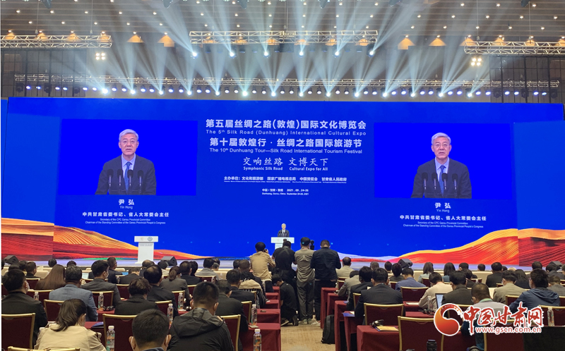 中國(guó)甘肅網(wǎng)9月24日訊(本網(wǎng)記者 宋芳科 楊亞楠 張振國(guó))9月24日上午,第五屆絲綢之路(敦煌)國(guó)際文化博覽會(huì)和第十屆敦煌行·絲綢之路國(guó)際旅游節(jié)開(kāi)幕。本屆“一會(huì)一節(jié)”由文化和旅游部、國(guó)家廣播電視總局、中國(guó)國(guó)際貿(mào)易促進(jìn)委員會(huì)、甘肅省人民政府共同主辦,以“交響絲路 文博天下”為主題,旨在進(jìn)一步加強(qiáng)“一帶一路”人文交流的官方合作和民間往來(lái),增進(jìn)共建“一帶一路”國(guó)家的文化認(rèn)同。中共中央政治局委員、中央書(shū)記處書(shū)記、中宣部部長(zhǎng)黃坤明以視頻方式發(fā)表主旨演講。
