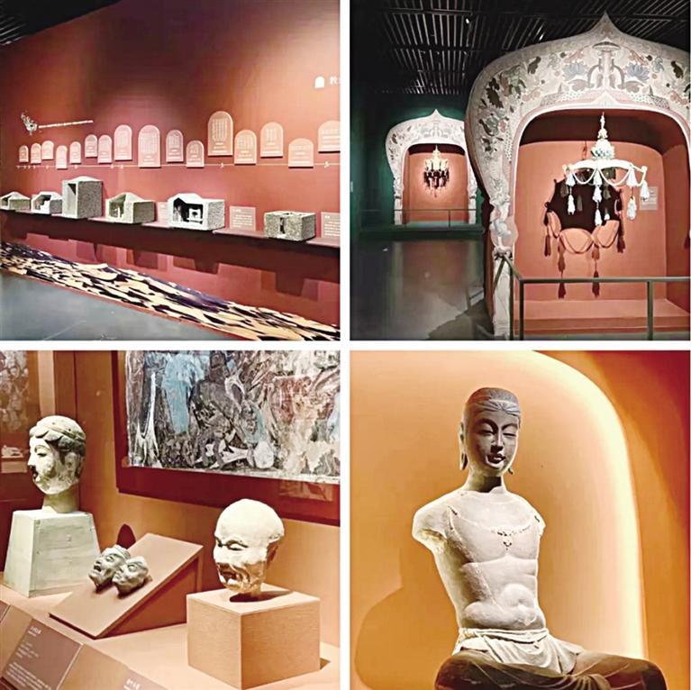 展覽分為“石窟藝術(shù)”“絲路重華”“萬象人間”3個(gè)單元,展出文物130多件(套),集中展示了甘肅河西走廊沿線出土的重要絲路文物精華,全面展示了中西文明在敦煌與河西地區(qū)的交融與成就。