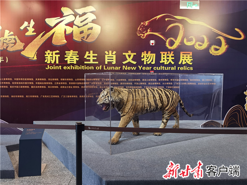 同時,還展出了甘肅省博物館甄選的全省20余件具有代表性的虎元素文物及自然標本。這些展品中,最亮眼的當屬甘肅省博物館館藏的一具野生東北虎標本——體型較大、花紋斑斕、毛色光潔。