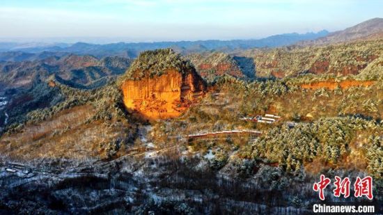 麥積山風(fēng)景區(qū)是中國(guó)南北方沉積地層在地表上層的分界線,又是黃河長(zhǎng)江兩大流域的分水嶺,雪后景色地貌獨(dú)特。周文濤 攝