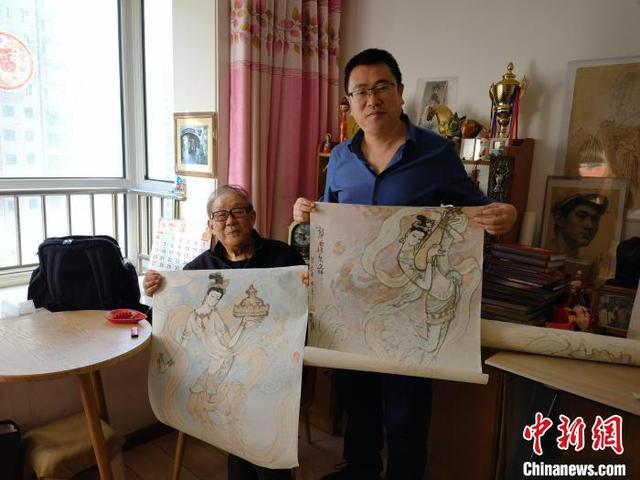 3月上旬,《絲路花雨·誕生》作者陳曉斌(右)拜訪今年86歲的舞美設(shè)計(jì)師李明強(qiáng)(右)老先生?!⊥跸让稀z