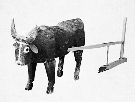 武威漢墓出土的木牛拉犁。