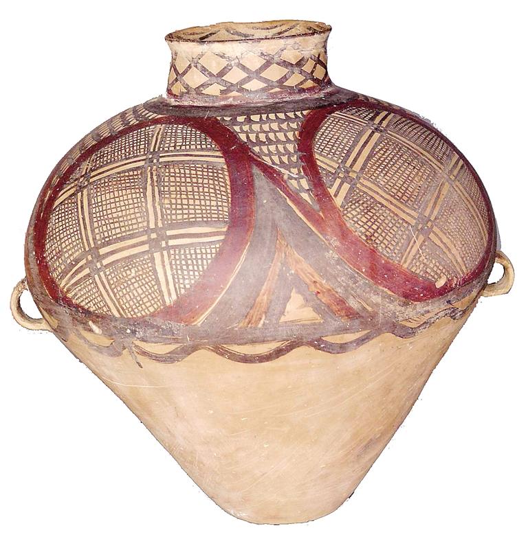 姓名:馬家窯文化半山類型漩渦紋雙耳彩陶罐 出生年代:距今約4650—4350年左右 住址:積石山縣博物館 體型:高34厘米,口徑15.7厘米,腹徑109.9厘米,底徑13厘米 自我描述: 我是國(guó)家二級(jí)文物。我們半山類型彩陶家族成員主要有大型貯藏器壺、甕、罐等。1988年積石山縣癿藏鄉(xiāng)吊地屲村一村民將我捐贈(zèng)給博物館。泥質(zhì)紅陶造就的我,撇口,束頸,溜肩,腹部飾對(duì)稱的雙耳,施黑彩,肩腹部有四方連續(xù)漩渦鋸齒紋,下飾一周水波紋。胎體光亮,紋飾細(xì)膩規(guī)整。