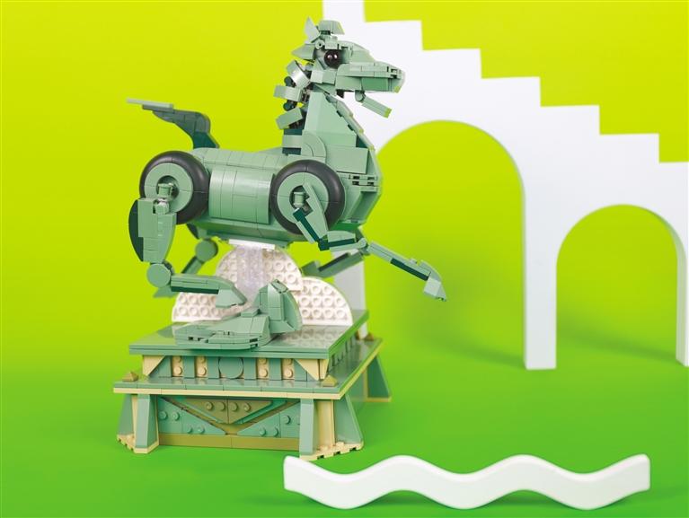 近日,全新打造的銅奔馬立體拼裝積木,更是將時下最流行的積木與銅奔馬跨界融合,用859塊積木還原文物。獨特的創(chuàng)意思維,讓銅奔馬在當下火上加火。