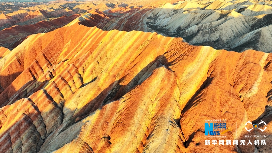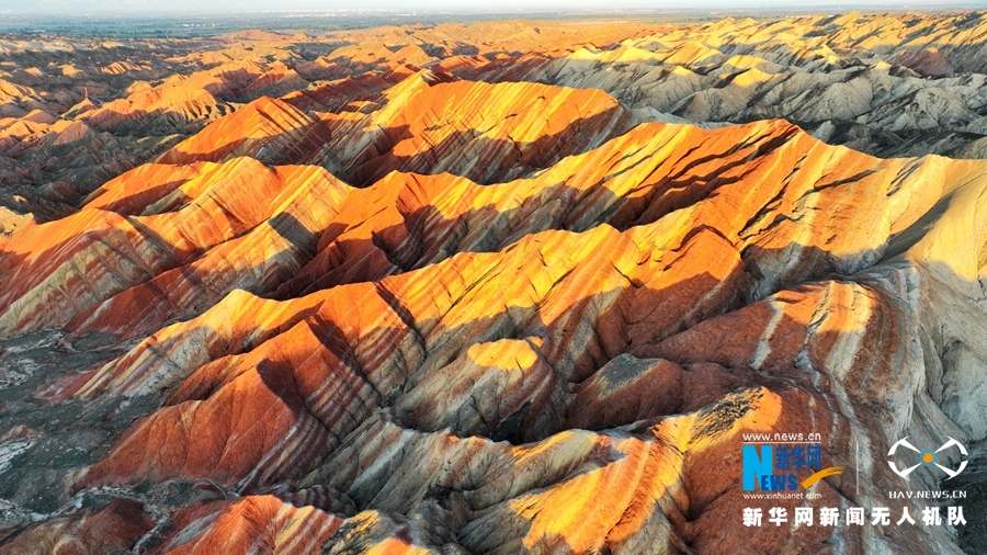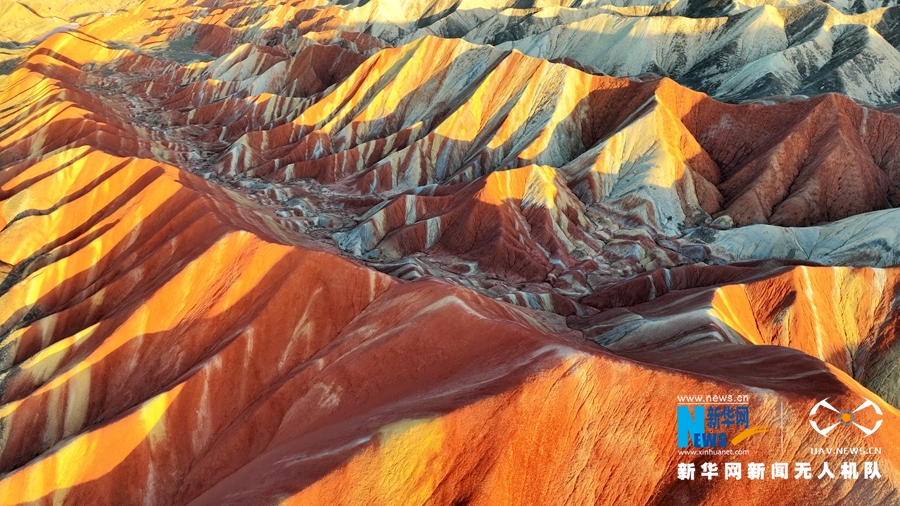 夏日傍晚,在夕陽的映照下,甘肅張掖七彩丹霞色彩艷麗、層理交錯,美不勝收。新華網(wǎng)發(fā)(成林 攝)