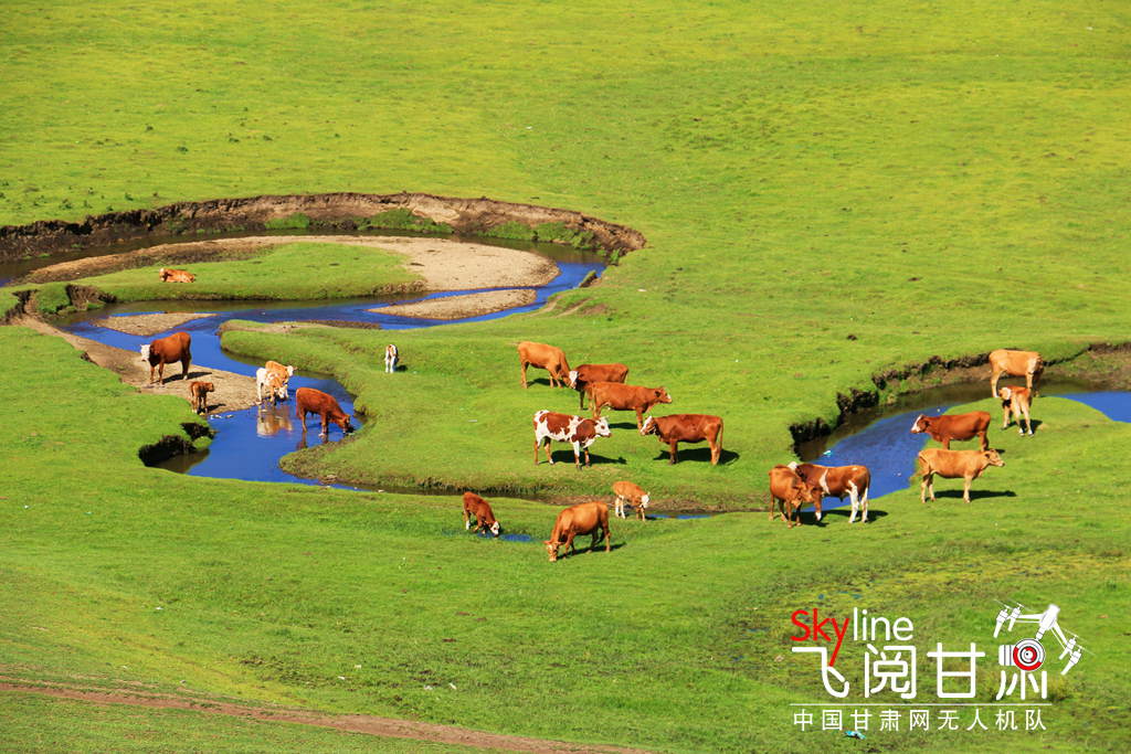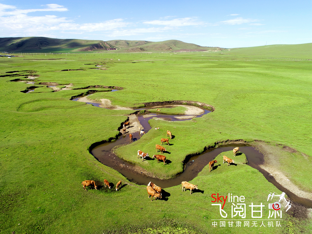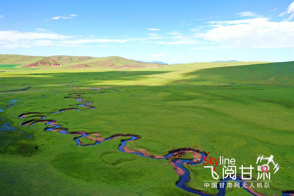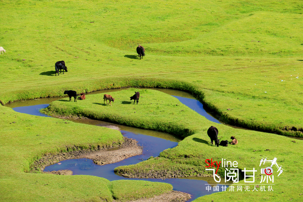 盛夏,是岷縣狼渡灘濕地草原一年中最好的時節(jié),這里天藍水清,牛肥馬壯,山花爛漫,像是鑲嵌在大地上的一顆綠色明珠,九曲十八彎的狼渡溪流蜿蜒其中,美不勝收。