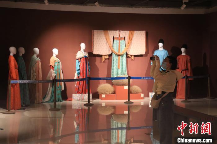 圖為游客在敦煌莫高窟參觀“云衣霓裳:敦煌唐代服飾文化暨創(chuàng)新設(shè)計展”。(資料圖) 張曉亮 攝