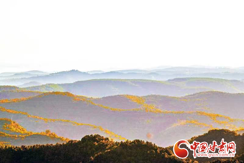 初冬時(shí)節(jié),在夕陽的映照下,平?jīng)鍪刑泼鄙绞〖?jí)森林公園云霧繚繞,山巒在云霧中若隱若現(xiàn)、如夢(mèng)如幻,呈現(xiàn)出仙境般美景。