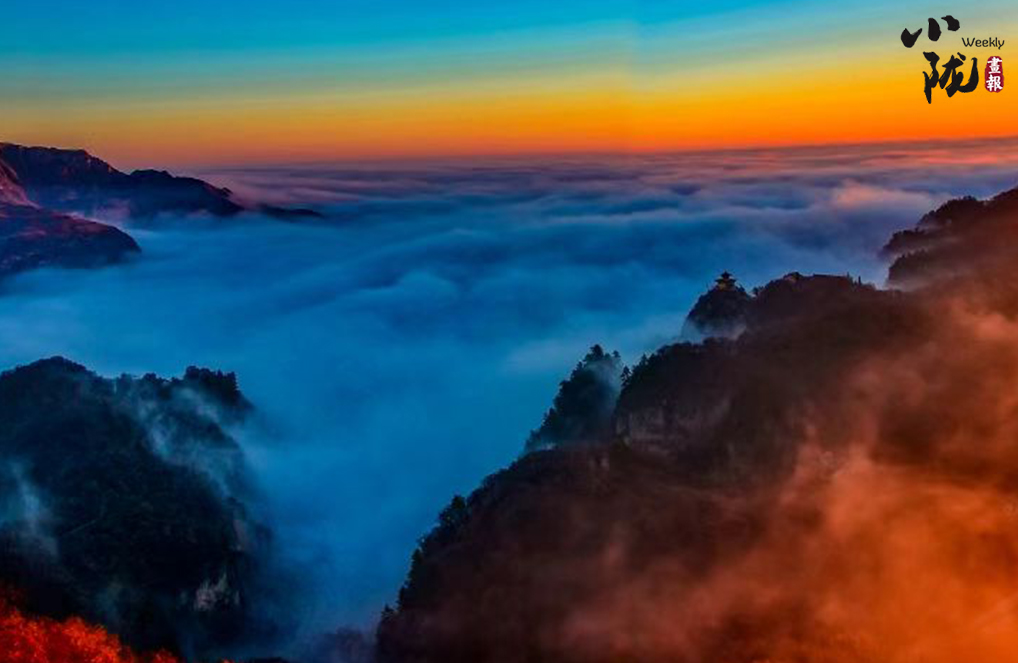 雪霽,登臨崆峒,望旭日東升,彩霞映紅山間,云霧隨風(fēng)翻滾,像云彩縹緲,纏繞在山腰之間,彌漫開來,又如一條仙女的白絲帶……絢麗而有詩(shī)意。