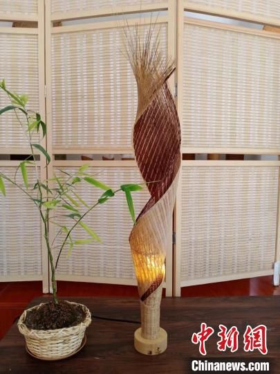 “竹編分為平面竹編和立體竹編,后者難度稍大,在經(jīng)緯編織的基礎(chǔ)上,還要穿插各種技法,如編、插、穿、削、鎖、釘、扎、套等,使編出的圖案變化多樣。”張照杰以一件“網(wǎng)紅產(chǎn)品”火炬造型落地?zé)魹槔f,從選材到制作完成,他耗費了近200個小時。
