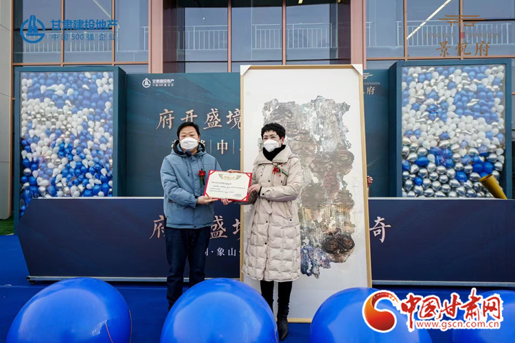 康樂(lè)縣博物館館長(zhǎng)馬正芳向畫家李衛(wèi)東頒發(fā)了收藏證書