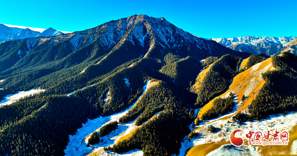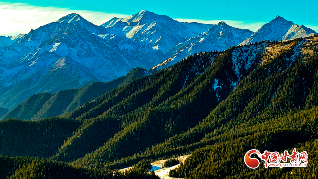 1月21日,雪后的祁連山國家公園甘肅省張掖段肅南片區(qū),遠處的巍峨祁連山脈被皚皚白雪層層包裹,蒼松翠柏,浴雪草原,一派山舞銀蛇的壯美北國風光。