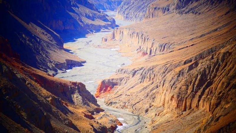 在漫漫歷史長(zhǎng)河中,馬營(yíng)河大峽谷經(jīng)過(guò)風(fēng)吹日曬,在祁連山下形成了陡峭突兀的深溝險(xiǎn)坡。大峽谷內(nèi),清澈見(jiàn)底的河水順著蜿蜒小道而下,令人嘆為觀止。馬營(yíng)河大峽谷集雄、奇、險(xiǎn)、秀為一體,峽谷底部清溪流淌,峽谷盡頭雪山聳立,平坦的崖頂云霧迷蒙,整個(gè)畫(huà)面壯觀雄偉,可以說(shuō),馬營(yíng)河大峽谷可以與美國(guó)科羅拉多大峽谷相媲美。