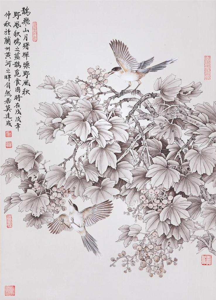 莫建成、莫曉松的花鳥畫藝術(shù)是在隴原大地的文脈浸染和敦煌藝術(shù)的熏陶滋養(yǎng)下,上下求索、靈苗自探的結(jié)晶,以其獨(dú)特的畫風(fēng),成為西北畫壇上一道亮麗的景觀。此次展覽展出兩位藝術(shù)家傾情創(chuàng)作的100多幅精品力作,將傳統(tǒng)積淀與時(shí)代審美相連接,實(shí)現(xiàn)了自然景觀與人文意象有機(jī)融合,展現(xiàn)了對(duì)西北大地的情愫、對(duì)優(yōu)秀傳統(tǒng)文化的重尋,體現(xiàn)出藝術(shù)家致力于中國(guó)“工筆花鳥畫傳承與發(fā)展”的深度思考與實(shí)踐。本版特選登其中部分作品,以饗讀者。——編者
