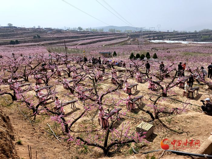 為了打造時尚新派桃園,秦安縣還將古箏表演,秦安小曲等融入桃園之中,以場景化表演提升游客的參與度和體驗感。