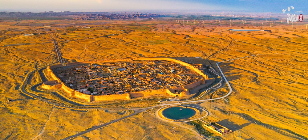 永泰古城堡墻由黃土夯筑而成,周長(zhǎng)1717米,墻高12米,城基厚6米,占地面積318畝。從高處俯視,整座城確實(shí)狀若一只巨龜伏在戈壁灘上,維妙維肖。龜城首尾足爪俱全,將其每個(gè)部位在軍事上的應(yīng)用都發(fā)揮到了極致。