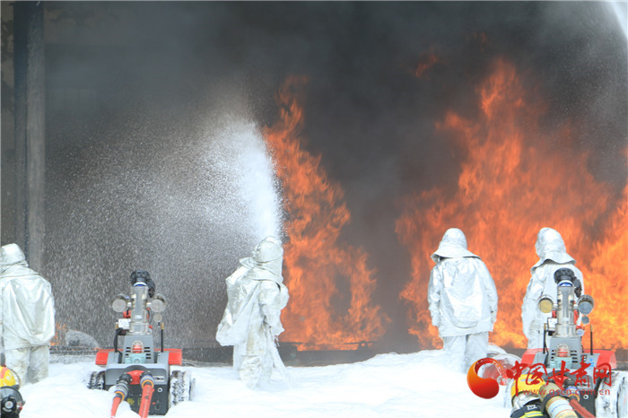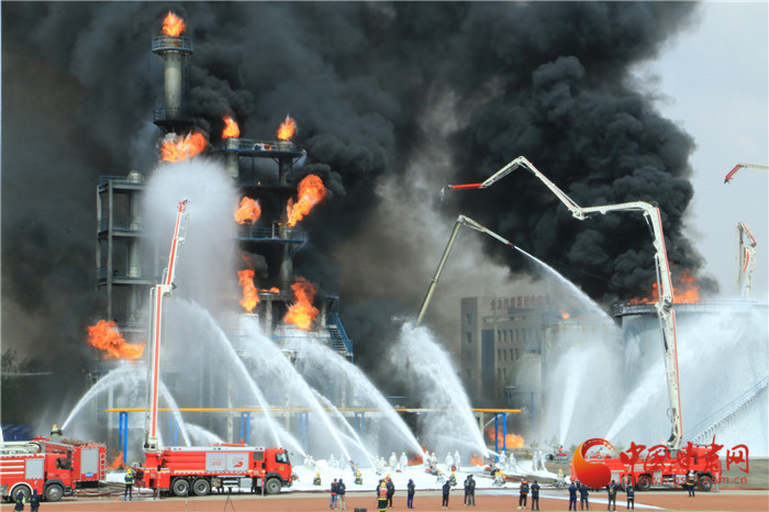 現(xiàn)場,爆炸聲浪一波未平,一波又起,黑煙滾滾夾雜火苗亂竄。在嚴峻考驗面前,消防隊伍采用先進技術(shù)壓制火力,發(fā)起總攻。最大程度模擬真實火災場景,達到應(yīng)對復雜火災考驗的能力。