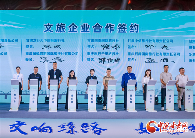 推介會(huì)上,蘭州、隴南兩地文旅部門分別作了當(dāng)?shù)匚穆觅Y源主題推介。甘肅蘭鐵國(guó)際旅行社與重慶和平國(guó)際旅行社;甘肅蘭神國(guó)際旅行社與重慶西美國(guó)際旅行社;嘉峪關(guān)君和國(guó)際旅行社與重慶渝之旅國(guó)際旅行社等兩地的20家文旅企業(yè)(旅行社)代表分別簽訂了《甘渝客源互送合作協(xié)議》。