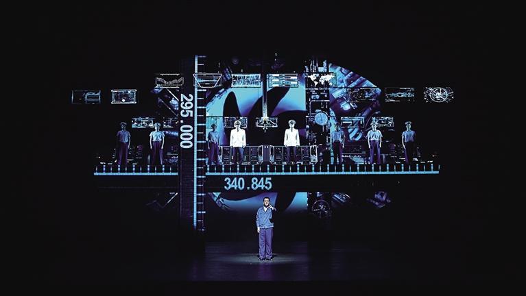 據(jù)了解,舞臺裝置上呈現(xiàn)出軍事工業(yè)的莊重感,如歌如畫般營造出了核潛艇極限下潛步步驚心的緊張氛圍,同時(shí)也讓觀眾近距離地走近了英模的成長歷程與內(nèi)心世界。