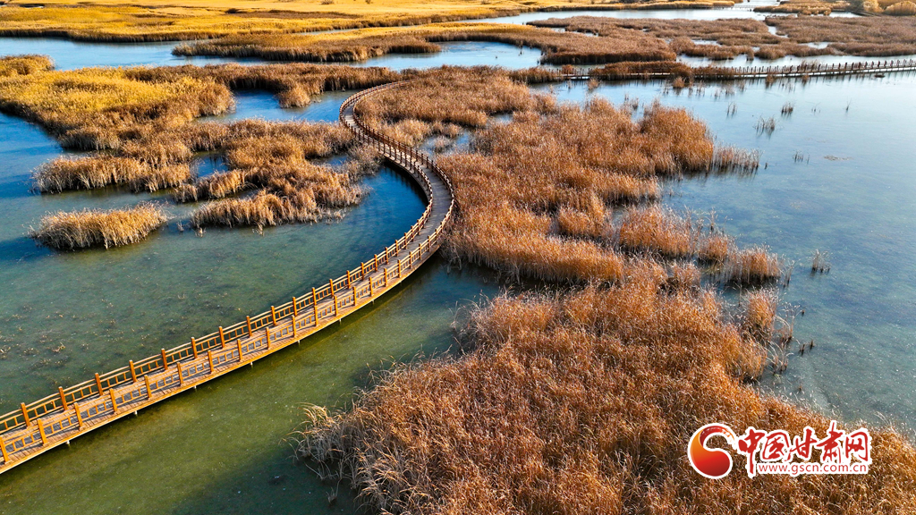 初冬時節(jié),張掖黑河濕地國家級自然保護區(qū)的蘆葦、蒲草等植物在秋風、冬霜的吹拂下都變成了金黃色,密密的蘆花舞動著裊娜的身姿,倩影婆娑,蘆葦叢里鳥鳴啾啾,整個濕地成為了一片金色的童話世界,讓人產(chǎn)生無限遐思。