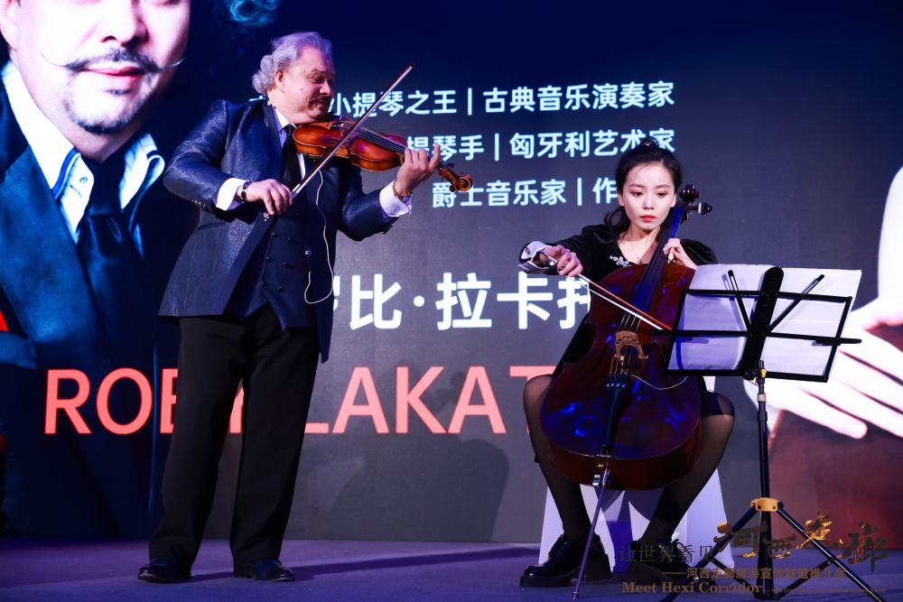 活動(dòng)現(xiàn)場(chǎng),張掖、武威、金昌、酒泉、嘉峪關(guān)5市分別展示當(dāng)?shù)氐奈幕糜钨Y源,呈現(xiàn)地方特色節(jié)目,并與甘肅省簡牘博物館共同發(fā)布“通關(guān)簡牘”,發(fā)出邀請(qǐng)“讓世界走進(jìn)河西走廊”。結(jié)合了甘肅特色的各類文藝表演、世界知名小提琴大師羅比·拉卡托斯以及羅馬尼亞藝術(shù)家們帶來的精彩節(jié)目也在活動(dòng)現(xiàn)場(chǎng)演出。