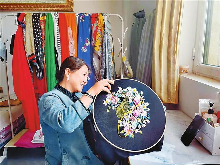 慢慢地,她的手法越來越嫻熟,繡的花樣也越來越多,現(xiàn)在隨手便可繡出形態(tài)逼真的幾十種樣式。“我小學(xué)時(shí)就跟著家人學(xué)繡花,想不到刺繡手藝還能賺錢?,F(xiàn)在我想讓更多婦女通過刺繡手藝增收致富,把刺繡技藝傳承下去”。