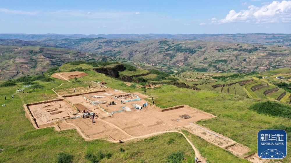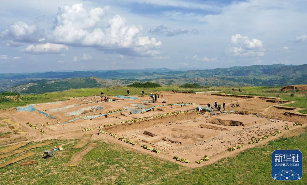 這是2022年6月10日拍攝的甘肅省隴南市禮縣四角坪遺址考古發(fā)掘現(xiàn)場(無人機照片)。新華社記者 郎兵兵 攝