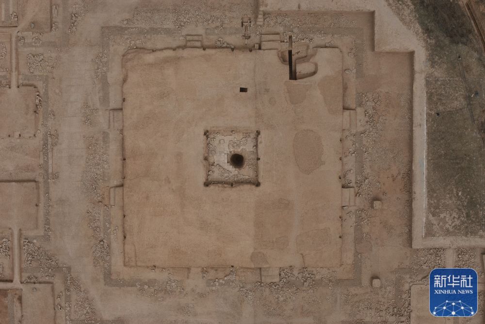 這是甘肅省隴南市禮縣四角坪遺址的中心夯土臺基(2023年11月20日攝,無人機照片)。新華社發(fā)(四角坪遺址考古隊供圖)