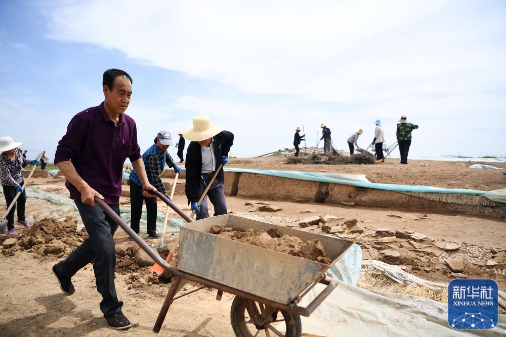 工作人員在甘肅省隴南市禮縣四角坪遺址考古發(fā)掘現(xiàn)場工作(2022年6月10日攝)。