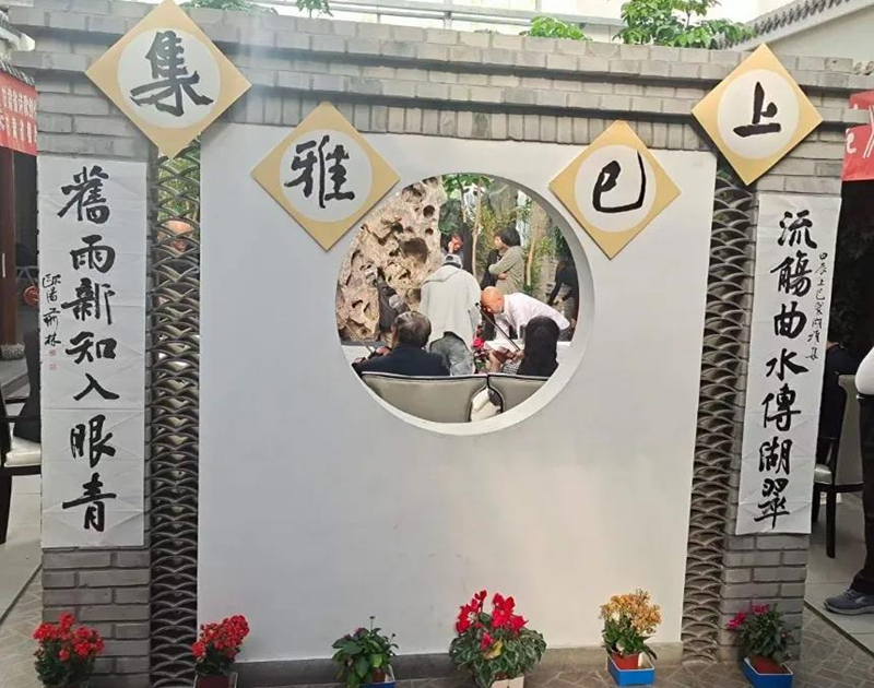 于是詞人騷客,寄快意于佳對,詠雅事以妙韻。書家畫者,馳龍蛇于筆下,氤水墨于案前。各賦清幽,盡呈神妙,足紀(jì)此日雅集之盛也。復(fù)置美酒佳肴,環(huán)坐笑談,漫飲徐吟,足盡浮生偷閑之歡矣。