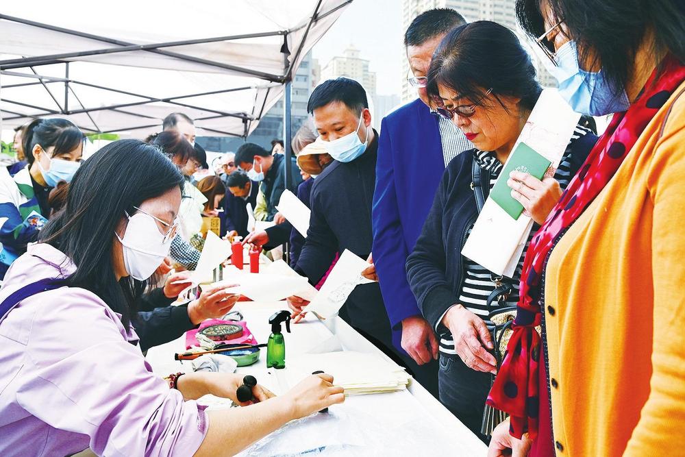 活動現(xiàn)場,甘肅省圖書館的工作人員帶領讀者體驗傳拓之美。 新甘肅·甘肅經(jīng)濟日報記者 瞿娟 攝