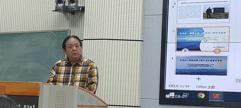 馮玉雷一直認(rèn)認(rèn)真真,埋頭干事。他心中有一個非常宏大的目標(biāo),向著這個目標(biāo)行進過程中,腳踏實地。前幾年他在西北師范大學(xué)首開公選課《中國玉文化》,把玉文化作為專門的一門課來講,具有開拓性。玉文化作為一門學(xué)科,在全國各大高校此前還沒有先例,馮玉雷先生做了一件非常有意義的事情。這次講座對我非常有啟發(fā)。從這門課的內(nèi)涵來講,其實又是一個延續(xù):對傳統(tǒng)文化也好,考古文化也好,對甘肅省乃至整個中華大地,從玉文化開始出現(xiàn),發(fā)展到現(xiàn)在,就是一種延續(xù)。玉和玉器至堅至柔,至圣至潔,卻默默無言,但是它們告訴了我們很多以前不知道或者沒有意識到的信息,從重見天光的那一刻起,有無數(shù)信息在源源不斷的釋放,就看人們?nèi)绾卫斫?,如何解讀。如果不研究、發(fā)現(xiàn)這些玉器的內(nèi)涵,那還是相當(dāng)于某種意義上的沉睡。馮玉雷創(chuàng)作小說,研究玉文化,還組織十幾次考察活動,國內(nèi)的有些大家都參與,這像不像流動的學(xué)術(shù)討論會?他的長篇小說《禹王書》出版剛剛一個月,據(jù)我所知,“玉文化、神話小說《禹王書》的學(xué)術(shù)背景”講座是首次分享,他把研究成果、創(chuàng)作成果第一時間通過課堂與同學(xué)們分享,我仿佛看到他帶著學(xué)生勇往直前,義無反顧地向前走著,這本身就是玉文化精神的傳承和發(fā)揚!我感覺到馮玉雷《禹王書》的思緒上下翻飛,縱橫馳騁,騰躍五千年。小說中有非常核心的價值內(nèi)涵,就是玉文化本身所具有的、深深進入到我們民族根脈中的文化內(nèi)涵,同時,又有就是對文學(xué)的一種激發(fā)。小說中的神話人物以及他們之間的交流、故事、語言,還有那些玉器,都非常神奇??梢灶A(yù)想,這本書的后延性非常長遠(yuǎn),希望玉文化班的同學(xué)能夠在馮玉雷老師帶領(lǐng)下,傳承發(fā)揚玉文化,完成從璞玉到玉器的轉(zhuǎn)化!