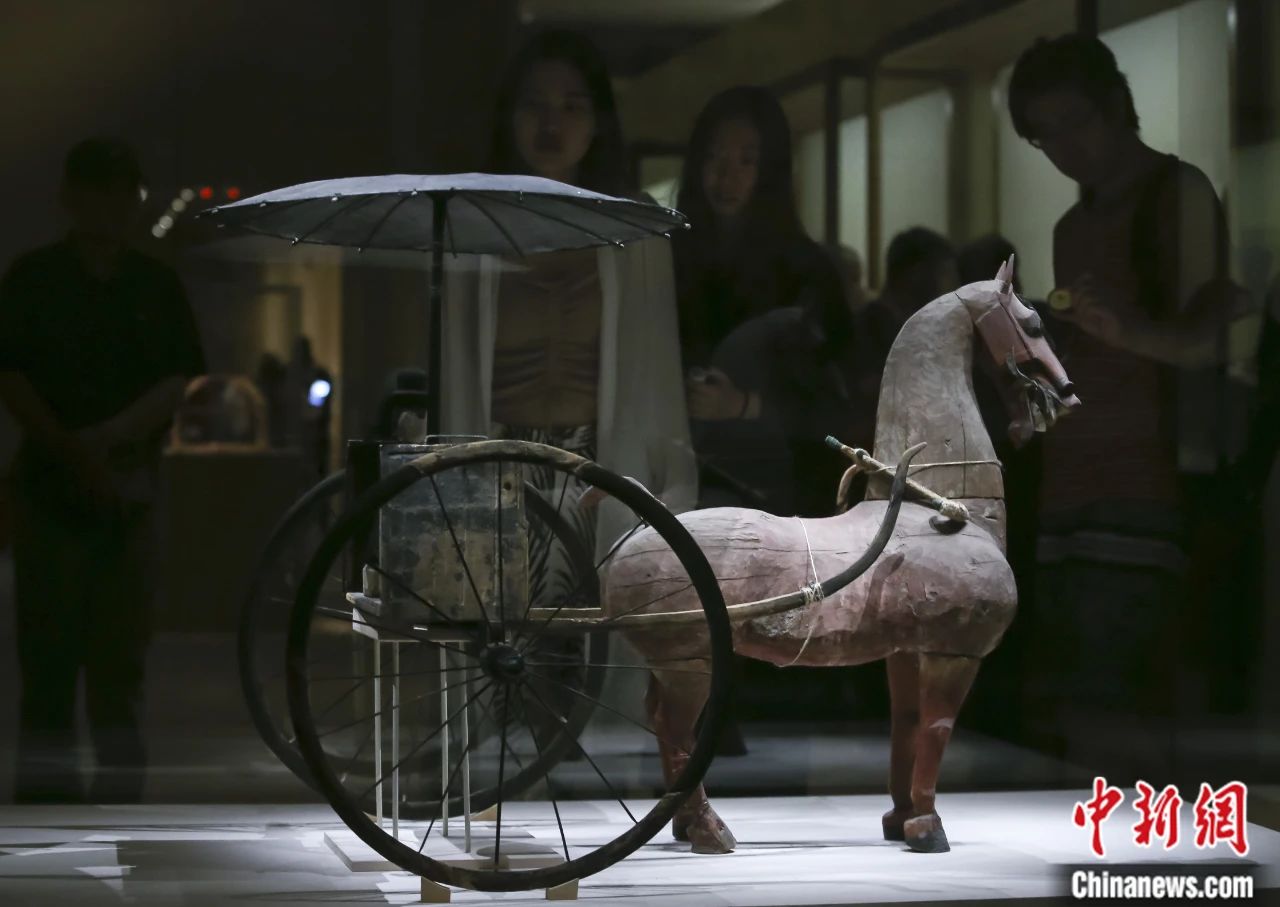 “絲路孔道——甘肅文物菁華展”在中國(guó)國(guó)家博物館舉行,展覽展出西漢彩繪木軺車(chē)。賈天勇 攝