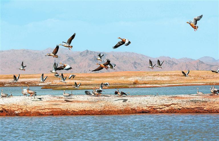近年來,經(jīng)過當(dāng)?shù)赜嘘P(guān)部門和甘肅鹽池灣國家級(jí)自然保護(hù)區(qū)的有效治理和保護(hù),野生動(dòng)物種群逐漸增多。每年遷徙至此繁衍生息的鳥類種群和數(shù)量不斷增加,時(shí)常上演萬鳥翔集的壯觀場(chǎng)景,勾勒出一幅和諧壯美的大自然畫卷。
