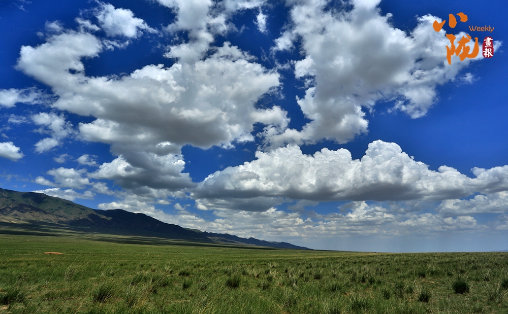 遠處白云悠悠,百萬畝草原一望無垠,羊群點綴的大草原和那殘存的烽火臺相映成趣,呈現出一幅綠意盎然的詩意畫卷。