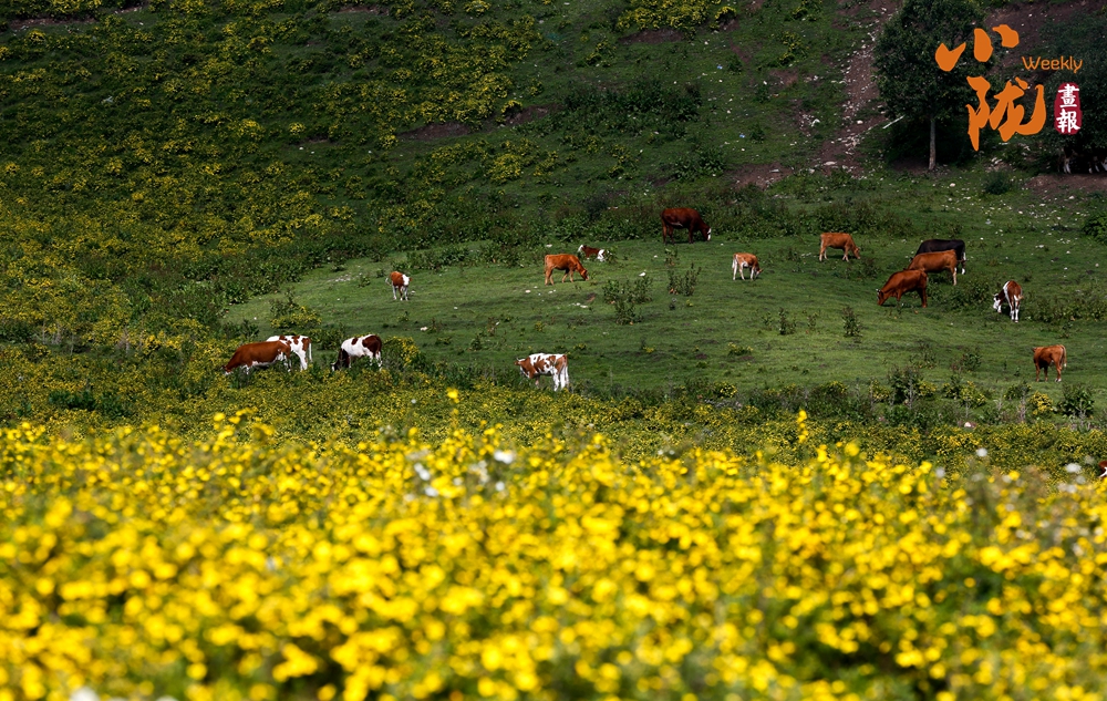每年七月,廣闊無垠的黃草坪盡情釋放生命的活力,換上了金黃色外衣,清新而明凈,鋪滿一座又一座山坡。