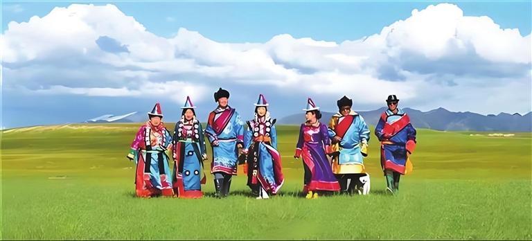 元、明時期蒙古族進入甘肅,后來又經(jīng)過各類遷徙、文化交流與改變,為適應寒旱牧區(qū)的生活環(huán)境和放牧騎獵的生活方式需要,蒙古族服裝多為寬大的長袍、長坎肩、腰帶、帽子、靴子,有男女區(qū)別、長幼區(qū)別、季節(jié)區(qū)別、節(jié)日與日常的區(qū)別,最為盛大的當屬婚慶服飾。