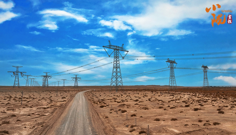 一根根“銀色長龍”蜿蜒穿越戈壁沙漠,伸向遠方,去連接千家萬戶,場面蔚為壯觀。