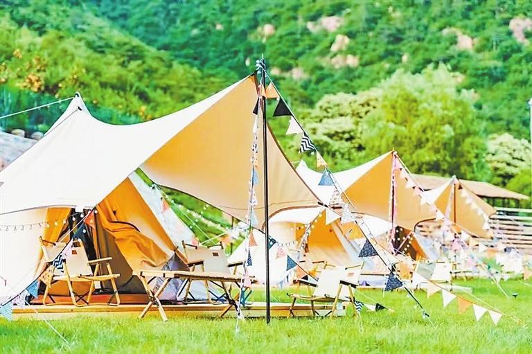 嗅著泥土和綠草的清香,享受久違的愜意。在露營(yíng)基地來一場(chǎng)豐盛的下午茶,閑聊、玩桌游;當(dāng)夜幕降臨,來一場(chǎng)煙火味滿滿的草坪燒烤,各種美食鋪在桌上,露營(yíng)的氛圍感被拉滿。不僅如此,周邊還有太多文旅場(chǎng)景可供選擇,游客可到藥王洞中醫(yī)藥養(yǎng)生堂體驗(yàn)藥茶、藥膳,在杜梨峁觀景臺(tái)祈愿打卡。